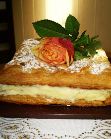 Kiedyś przyjechała do mnie Anes i przywiozła niewielkie zawiniątko. Okazało się, że kryje ono przepyszną napoleonkę. Zjadłyśmy ją ze smakiem do kawy, oczywiście sporą część zostawiając dla Daria. Ten zjadł ciasto błyskawicznie, ale stwierdził, że jakoś zapachniało malizną. No tak, wcale mnie to nie zdziwiło. Dla mojego męża odpowiednia porcja to pół blaszki :) Poprosiłam Anes o przepis i oczywiście go dostałam. Od tego czasu przygotowuję napoleonkę wg receptury mojej przyjaciółki. Spróbujcie – jest przepyszna! Delikatne, francuskie ciasto, pięknie rozwarstwione, wypełnione jest waniliowym gęstym kremem. Całość, oprószona obłoczkiem cukru pudru, przypomina mi kupowane w dzieciństwie ciastka, które kusiły z półek w lokalnej cukierence. Polecam.
