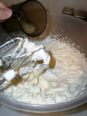 5. Przygotować krem śmietankowy: Śmietanę ubić na puszystą masę. Żelatynę rozpuścić w minimalnej ilości gorącej wody, ostudzić, zmiksować ze śmietaną.